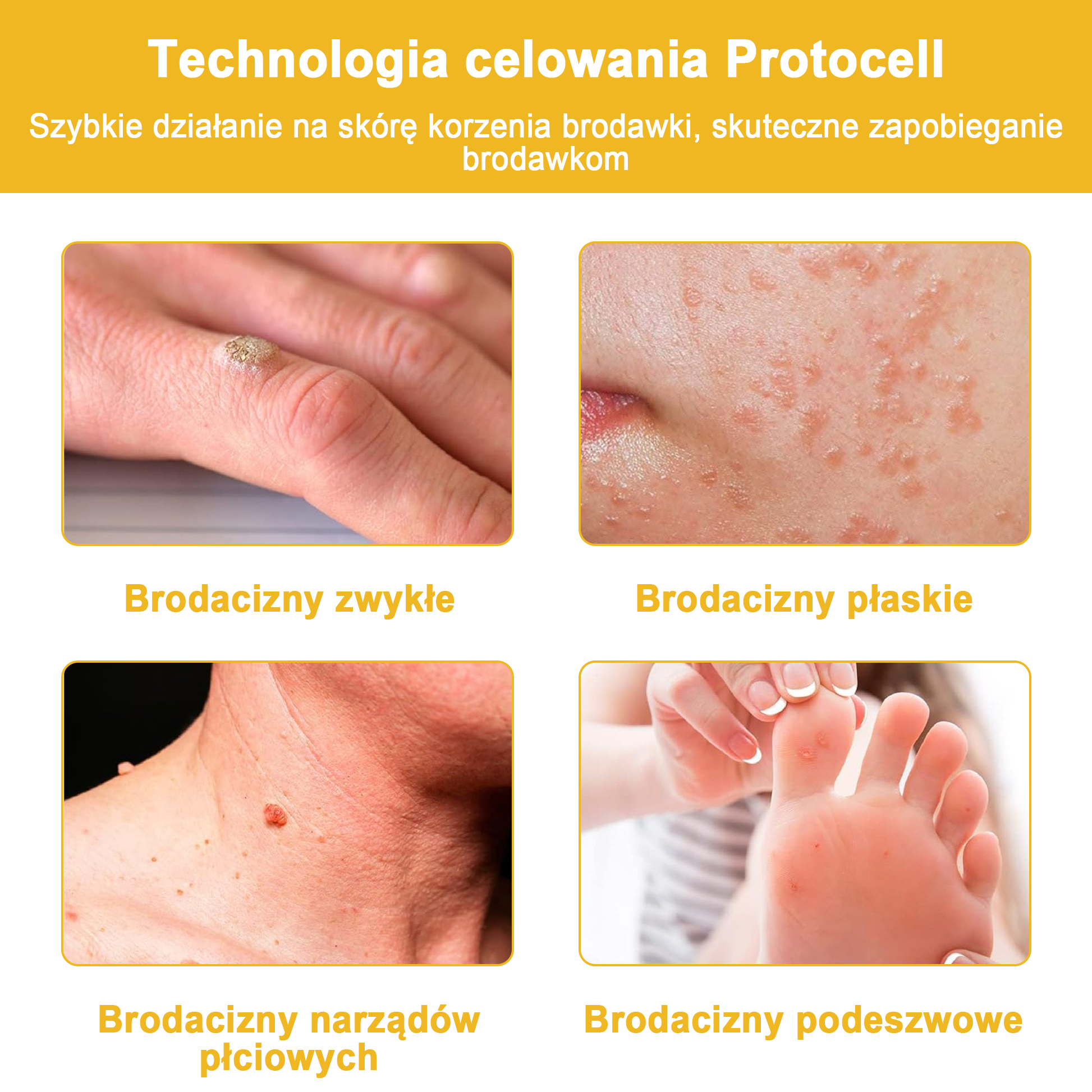 Całkowicie usuwa wszystkie rodzaje brodawek i różne trudne do wyleczenia problemy skórne w ciągu 1-2 tygodni.