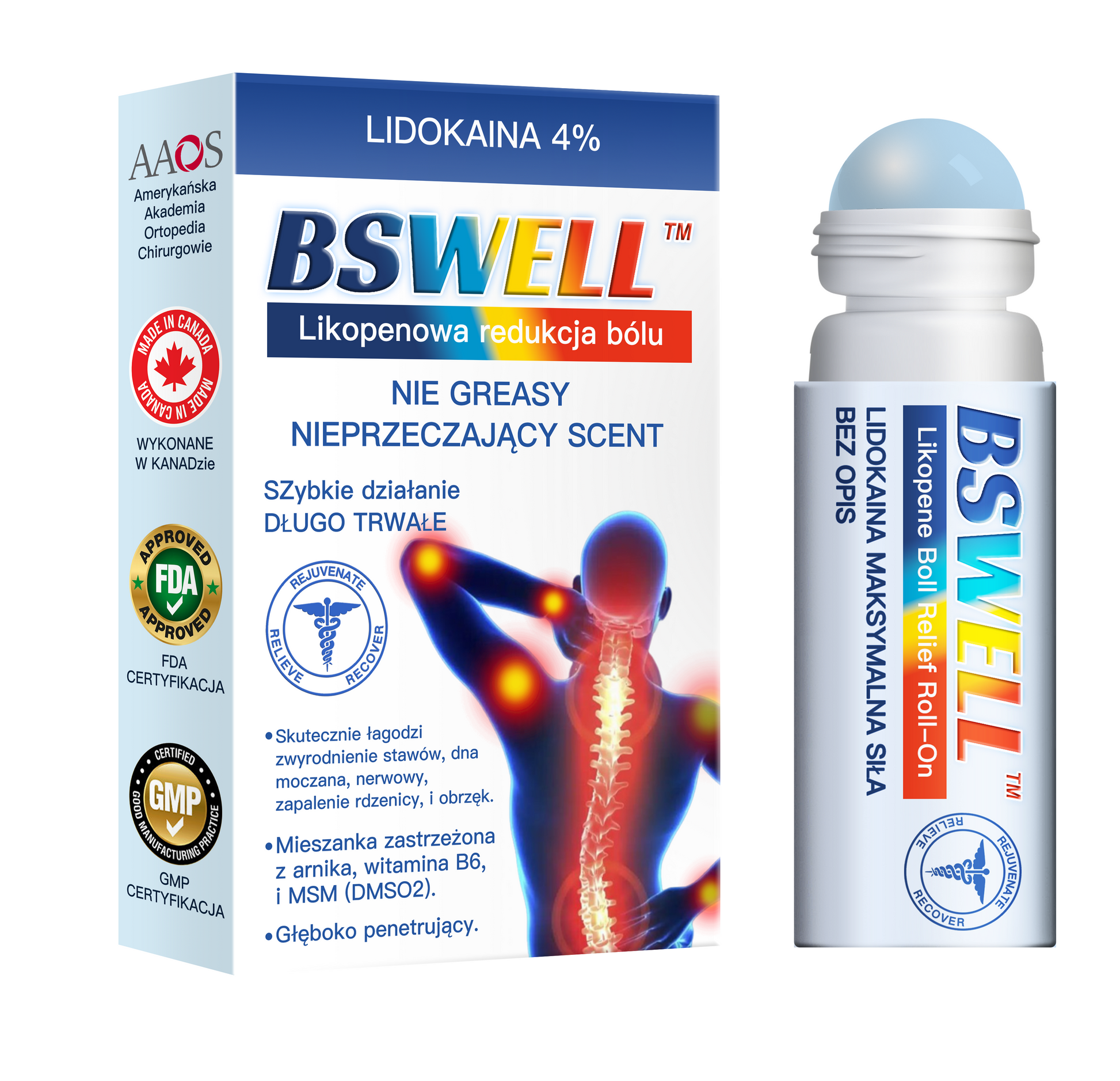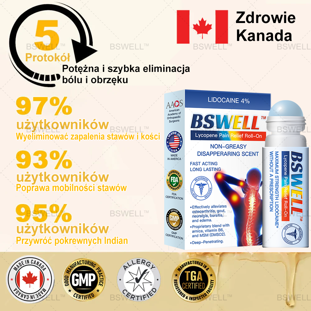 „Jako chirurg ortopeda, popieram stosowanie BSWELL™ Lidokainowy Łagodzący Ból w Rolce Żel dla osób cierpiących na choroby stawów i kości, takie jak choroba zwyrodnieniowa stawów, reumatoidalne zapalenie stawów i inne stany zapalne. Ten żel zawiera aktywne składniki, takie jak lidokaina, glukozamina, MSM, arnika, chondroityna i witamina K2, które pomagają złagodzić stan zapalny, odżywiają stawy i poprawiają mobilność. Pomaga również odbudować i zregenerować chrząstkę oraz tkankę kostną, łagodząc ból i sztywność, eliminując szkodliwe kryształy, które mogą gromadzić się w stawach, poprawiając funkcję stawów.”