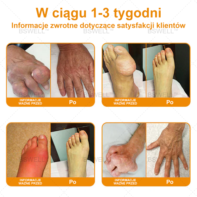 „Wraz z wiekiem rozwinęła się u mnie dna moczanowa w dłoniach, a spuchnięte guzki dnowe poważnie wpływały na moje życie. Próbowałam wielu drogich leczeń, ale nic nie pomagało. Dopiero kiedy mój przyjaciel, który pracuje w rehabilitacji stawów w Los Angeles, zasugerował, żebym spróbowała BSWELL™ Lidokainowy Łagodzący Ból w Rolce Żel, zaczęłam zauważać poprawę. Używałam go przez około 38 dni, a wszystkie spuchnięte guzki zniknęły, jakby ich nigdy nie było. Jestem teraz bardzo zadowolona z wyników i polecam go każdemu.” – Mariah Jenkins, 59, Hamilton, Ontario.