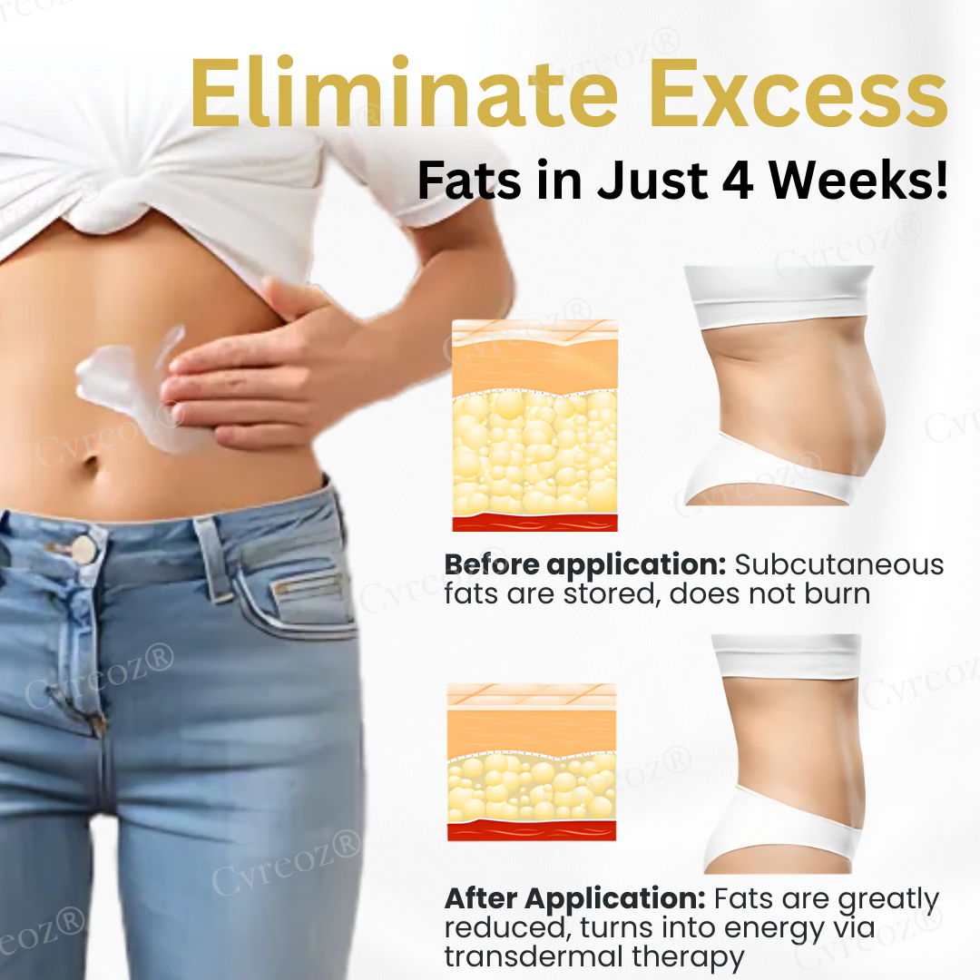 Cvreoz® wykorzystuje system przezskórnego dostarczania, aby umożliwić silnym składnikom, takim jak GLP-1 i imbir, wniknięcie w skórę, ukierunkowanie uporczywych komórek tłuszczowych, przyspieszenie metabolizmu i poprawę krążenia — prowadząc do widocznej redukcji tłuszczu i ujędrnienia skóry z czasem.