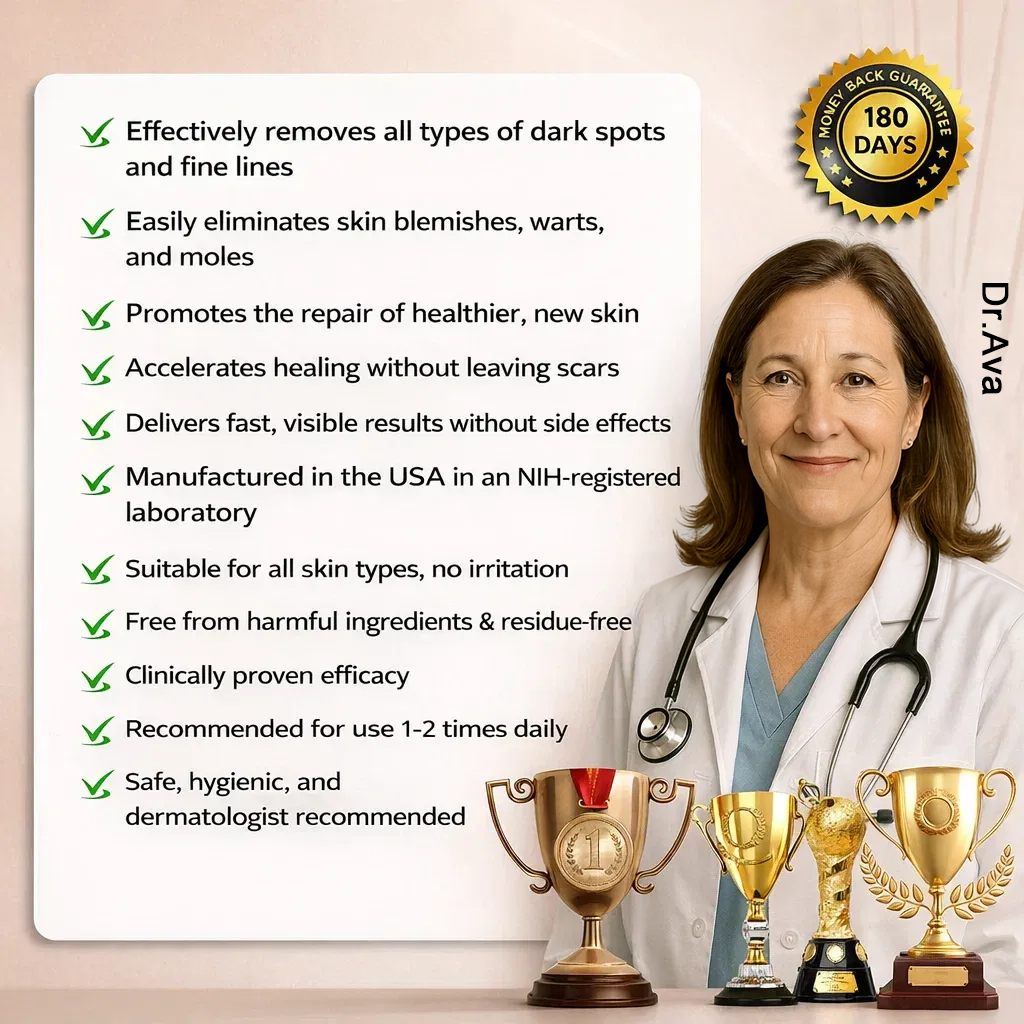 Dr Ava jest certyfikowanym specjalistą dermatologii z siedzibą w USA, z ponad 15-letnim doświadczeniem w badaniach klinicznych dotyczących pielęgnacji skóry i nieinwazyjnych rozwiązaniach. Jej praca koncentruje się na zrozumieniu, jak działa naturalna bariera skóry i jak ukierunkowane, delikatne formuły mogą wspierać długoterminowe zdrowie skóry.